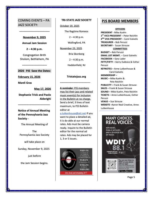 Copyright © 2025 Pennsylvania Jazz Society | Site by A.N. Creative LLC.